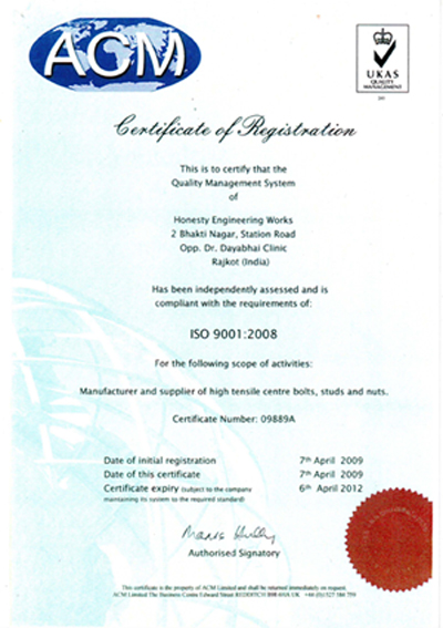 | Honesty Engineering Works offers a range of high tensil bolt, studs, nut & Centre bolt various types of automobils, oil engines for Connecting Rod, Rod Bolt, as O.E. supplier, manufactured from th material of S. A. E. 4140, 15B25, 15B41, 1541, EN. 19, 18D of Mukund & Usha Marting companies. Facility avavilable are ‘thread rolling machine, centreless grinder, flat threading machine, heading machine for Bolt, Supplying the Products to various dealers in Delhi, Bombay, Baroda, Rajkot and Calcutta, Kanpur Parties. |